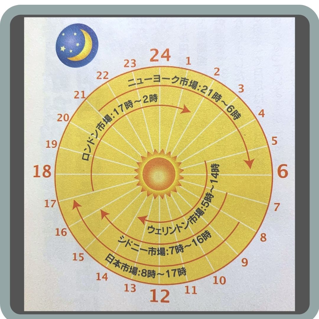 それぞれの国の市場がリレーをするようにつながりながら取引を行っているのです。